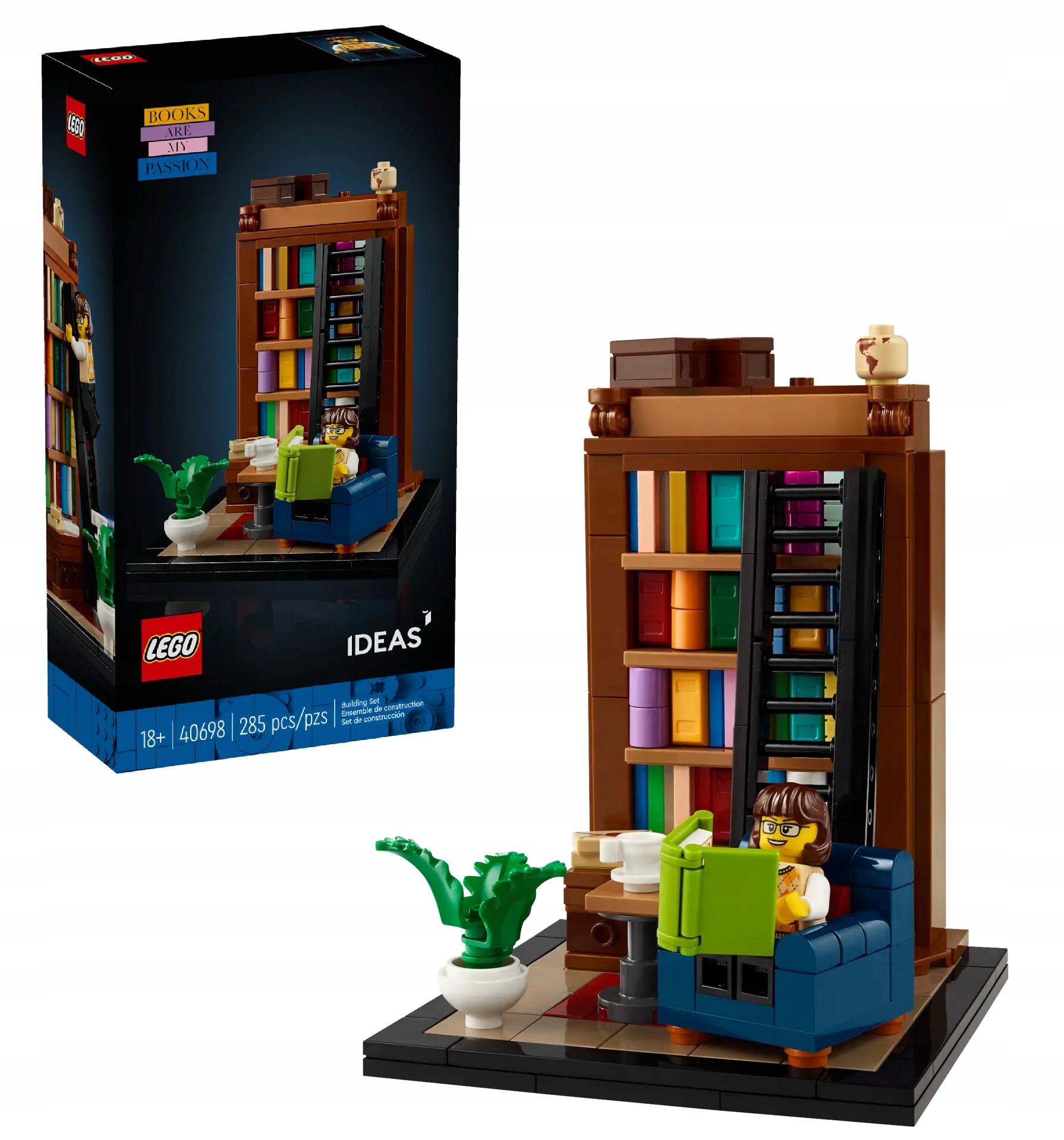 Nechte se unést kreativitou a postavte si stavebnici pro dospělé LEGO® Ideas Knihy jsou moje vášeň (40698). Tato sada, která zvítězila v soutěži fanoušků o návrh LEGO Ideas, umožňuje knihomolům vytvořit knihovnu LEGO s psacím stolem, barevnými knihami a schůdky. Mezi další roztomilé prvky sady patří pohodlné křeslo, šálek a minifigurka, které oživují útulnou atmosféru. Po dokončení stavění lze model umístit jako ozdobu na stůl. Je to také skvělý dárek pro milovníky knih nebo spisovatele.