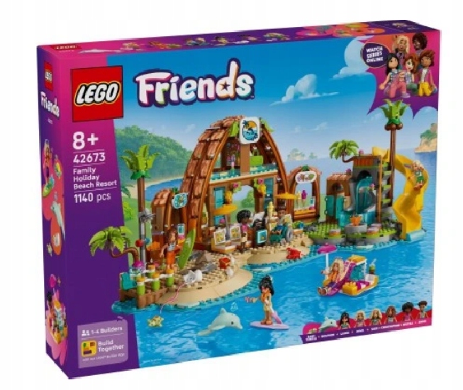 Užijte si rodinnou zábavu v prázdninovém stylu díky sadě LEGO® Friends Rodinná dovolená na pláži (42673) Obsahuje šest minipanenek LEGO Friends, figurku delfína a želvy a také doplňky pro kreativní hraní.