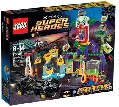 Joker a jeho skupina padouchů proměnili zábavní park Gotham City v groteskní Jokerland a uvěznili na jeho území Starfire, Beast Boye a Robina. Posaďte Batmana™ do úžasného batmobilu a vydejte se na záchranu. Vyhýbejte se ostřelování z děla a zaměřte robota-klauna, který střílí raketami. Potom využijte Super Jumper a porazte padouchy. Prásk! Odstraňte tučňáka z jeho plošiny. Výložník! Přesně změřte skok, abyste uvolnili Robina připevněného vzhůru nohama k kolu Harley Quinn. Kořist! Shoďte Poison Ivy z její větve. Nakonec zatlačte Jokera stojícího v ústech klauna a shoďte ho dolů po skluzavce přímo do bazénu s jedem! Sada obsahuje 8 minifigurek s doplňky: Batman™, Robin, Beast Boy, Starfire, Tučňák, Joker, Poison Ivy a Harley Quinn.