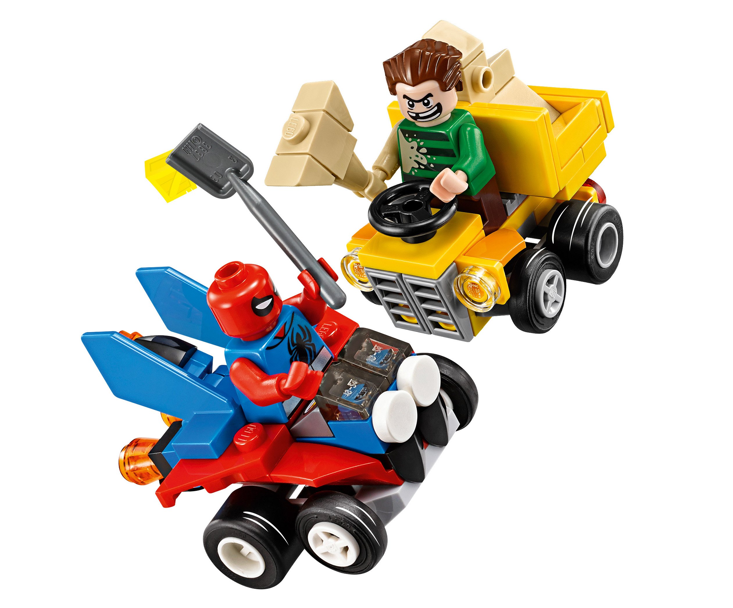 Uspořádejte souboj LEGO® Marvel Super Heroes Mighty Micros mezi Scarlet Spiderem v pavoučím tryskáči a jeho supernepřítelem Sandmanem v pískovém vozidle. Scarlet Spider má lopatku a Sandman je vyzbrojen pískovým kladivem, díky čemuž bude zábava ještě zajímavější.