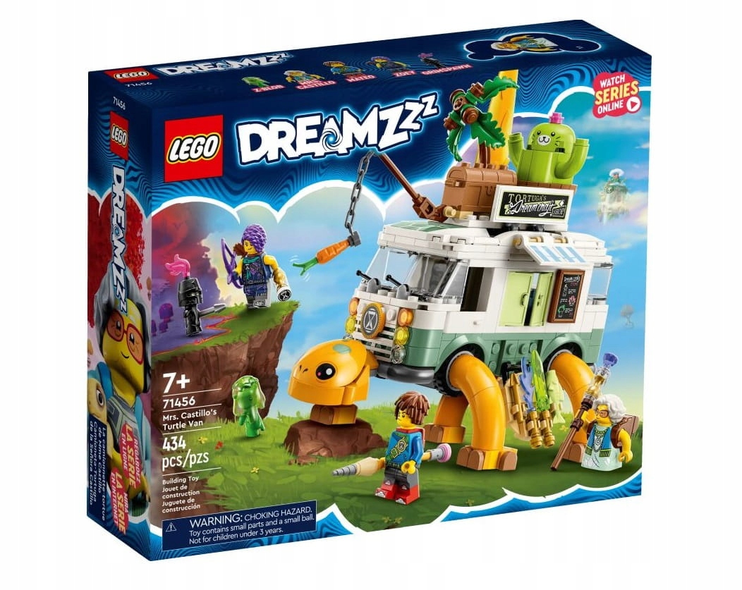 Děti ve věku sedmi let a starší se společně s paní Castillo, Mateem a Zoey vydají na neobvyklou cestu do říše snů a hrají si se sadou LEGO® DREAMZzz™ „Želví dodávka paní Castillo“ (71456).