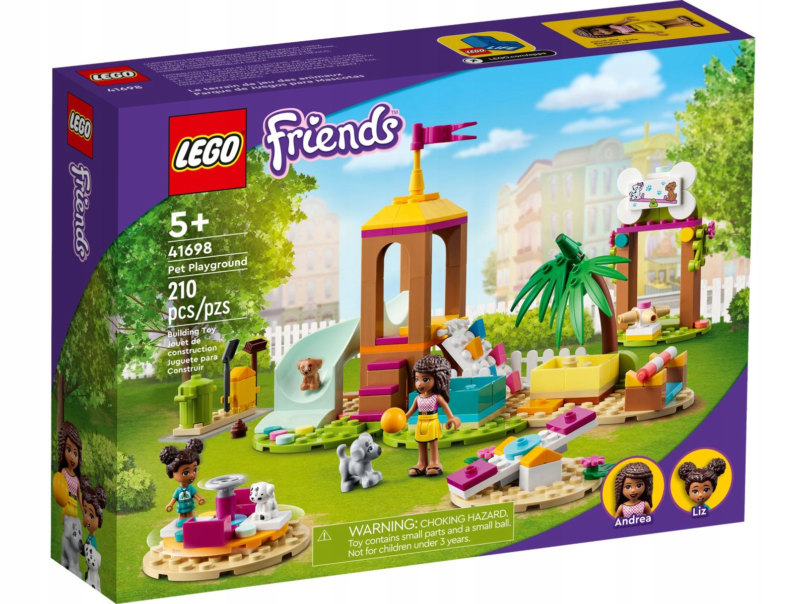 Sada LEGO® Friends Dětské hřiště pro zvířátka (41698) potěší každého mladého milovníka psů. Starostlivé děti od 5 let stráví dlouhé hodiny nápaditou hrou s figurkou LEGO Friends Andrey, která přišla s pejskem na barevné dětské hřiště v parku. Model naplněný fascinujícími detaily má model, kolotoč, skluzavku, lezeckou stěnu a houpačku. Je tu dokonce i lopatka a odpadkový koš, aby děti mohly uklidit po svých mazlíčcích.