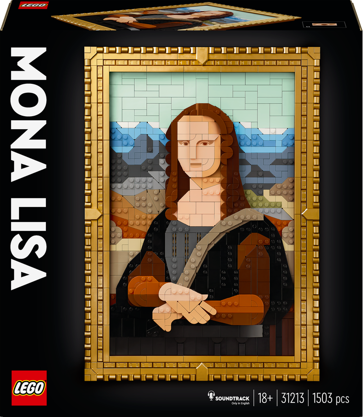 Tento obraz Mony Lisy v elegantním zlatém rámu je určený na zavěšení na zdi. Odnímatelný rám lze použít na vystavení dalších maleb z řady LEGO Art. Součástí této stavebnice LEGO pro dospělé je také brožurka s návodem na stavění a po naskenování QR kódu si můžete poslechnout soundtrack s fascinujícími informacemi o nadčasové přitažlivosti Mony Lisy.