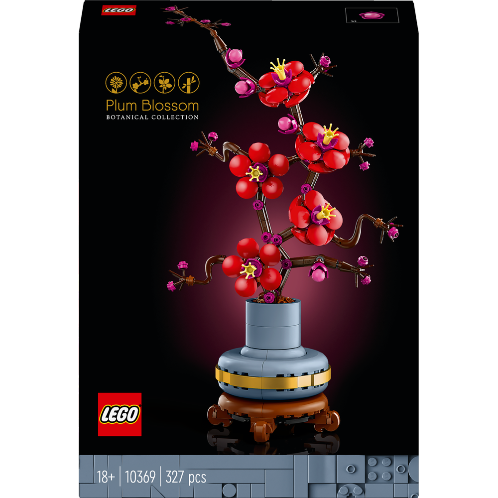 Vytvořte si doma nebo v kanceláři elegantní květinovou výstavku se stavebnicí LEGO® Botanicals Meruňka japonská s dekorací pro dospělé.