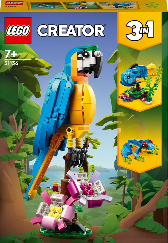 Děti vyrazí do deštného pralesa s touto úžasnou stavebnicí z řady LEGO® Creator s pohyblivými modely papouška, rybky a žáby.