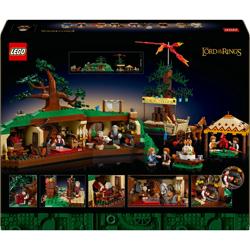 Postavte si Bilbovu hobití noru na svahu kopce s kulatými dveřmi a bohatě zařízeným interiérem, včetně vstupní haly, pracovny a salonku. Vdechněte scénám život pomocí interaktivních funkcí. Proměňte hořící dopis v Prsten moci nebo nechte Bilba zmizet otočením kolečka. Tato stavebnice je nabitá filmovými detaily od Gandalfova koně a vozu až po dračí ohňostroj na oslavě a představuje okouzlující výstavní kousek domů i do kanceláře.