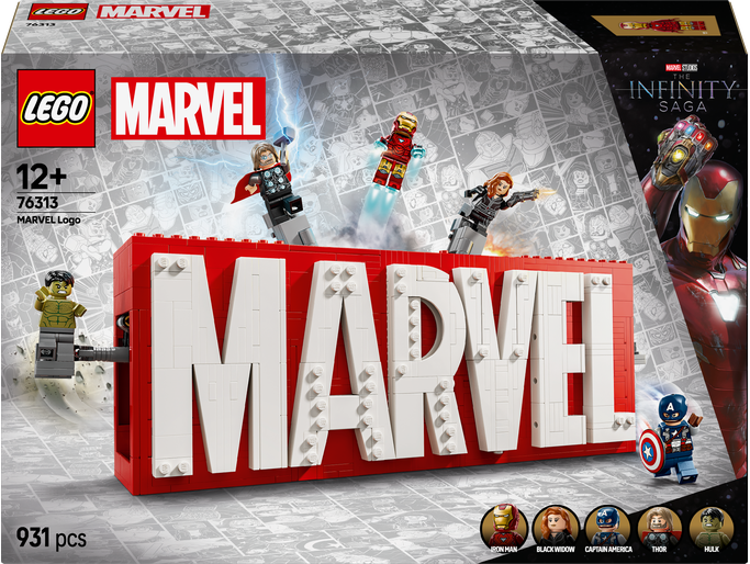 Stavebnice loga MARVEL se skládá z výrazných červených a bílých kostek. Děti stisknou 3 samostatná tlačítka v horní části loga a z modelu vyskočí minifigurky Avengerů Hulka, Thora, Iron Mana, Black Widow a Kapitána Ameriky, se kterými se děti vydají na akční dobrodružství. Každou minifigurku lze snadno vrátit do původní polohy. Stavitelé můžou přibližovat a otáčet modely ve 3D a sledovat svůj pokrok pomocí zábavné a intuitivní aplikace LEGO Builder pro ještě větší porci digitální zábavy.