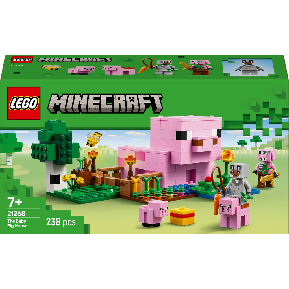 Domeček Prasátka (21268) je ideální hračka pro hráče Minecraftu, kteří milují stavění domů, zvířata a farmy. Tato tvořivá stavebnice Minecraft® představuje skvělý dárek k narozeninám, Vánocům nebo jakékoli jiné příležitosti pro kluky i holky od 7 let.
