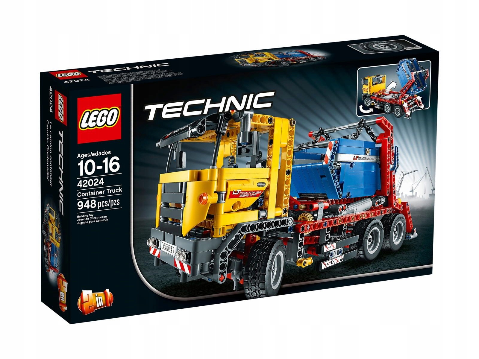 Nákladní vůz pro přepravu kontejnerů od LEGO má velkou kapotu, velká boční zrcátka, výklopné podpěry a výkonné pohony. Tento šestikolový stroj zvládne každou práci. Tento realistický model typu „2 v 1“ umožní přepravit jakýkoli náklad v kontejnerové skříni a poté jej spustit na zem pomocí pohonů. Připravte se na přepravu opravdu těžkých nákladů!