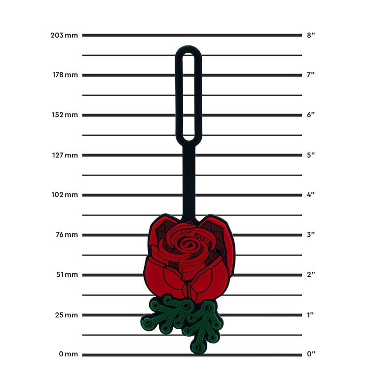Stylová jmenovka s motivem růže z kolekce LEGO Botanicals ozdobí kufr, batoh i cestovní tašku a zároveň usnadní jejich rychlé rozpoznání. Díky pružnému poutku se snadno připevňuje a květinový design dodává cestování elegantní hravý detail.