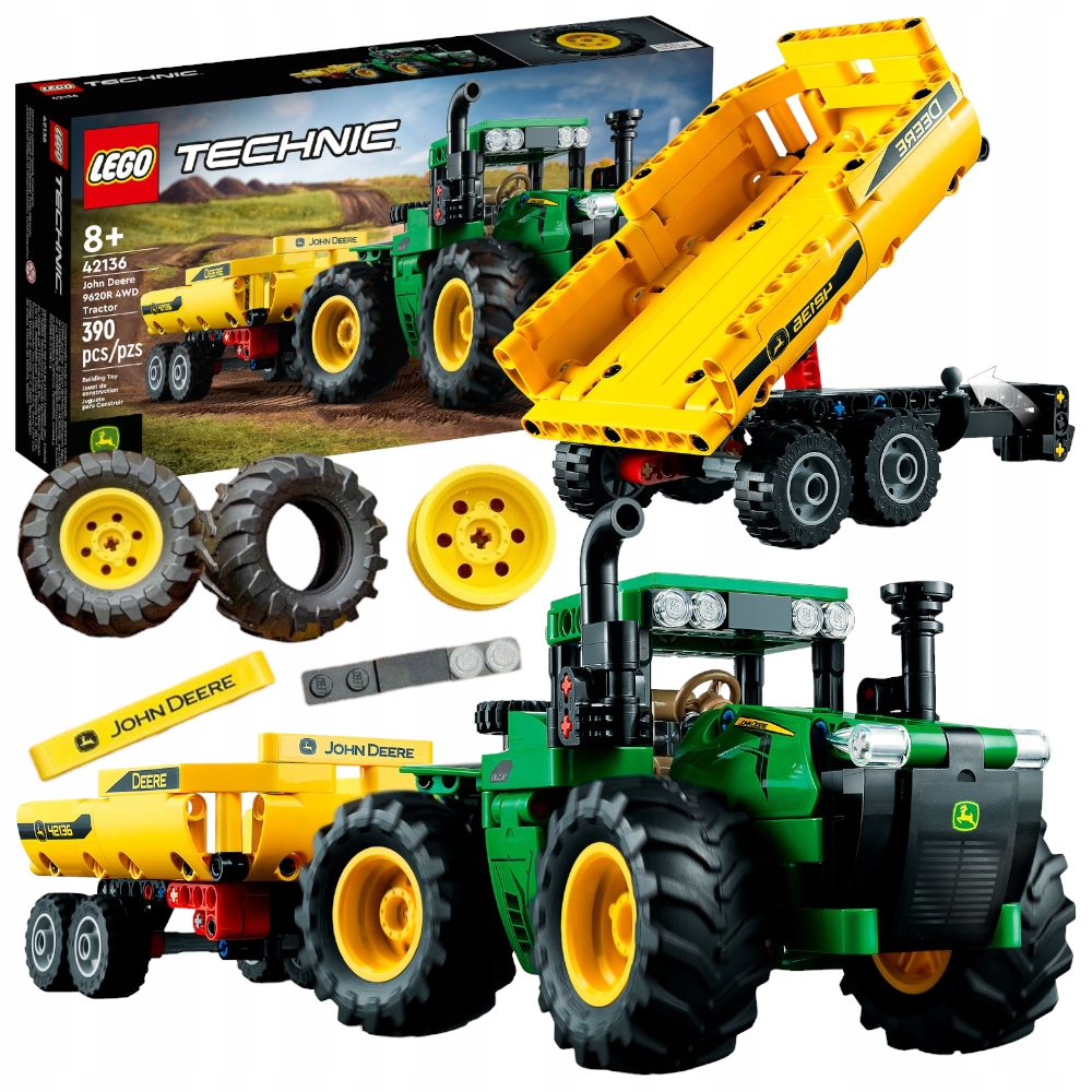 ▶ stavebnice Lego TECHNIC TRAKTOR S SKLÁPĚČEM TRAKTOR JOHN DEER 4WD SADA XL